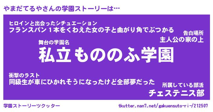 | 女子向けラノベタイトル風あだ名 | 『(仮)やまだてるやのやんごとなき事情』 |