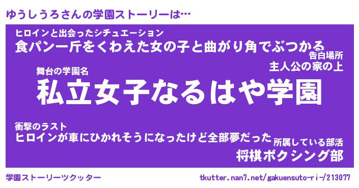 | 男性向けラノベタイトル風あだ名 | 『ユウシウロアートオンライン』 |