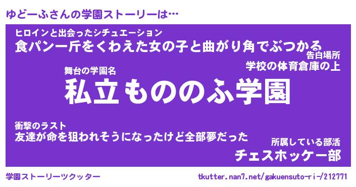 | 男性向けラノベタイトル風あだ名 | 『ゆどーふの憂鬱』 |