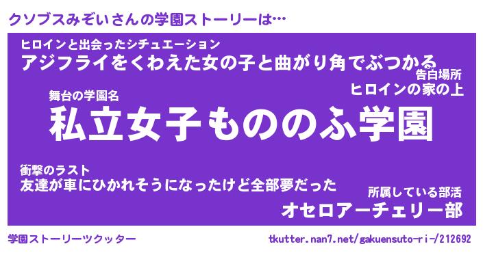 | 男性向けラノベタイトル風あだ名 | 『クソブスミゾイアートオンライン』 |