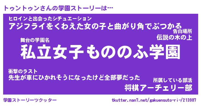 | 告白場所 先生の家の上 …「ふぃぎゅこ」 | 2月17日 06:24 |