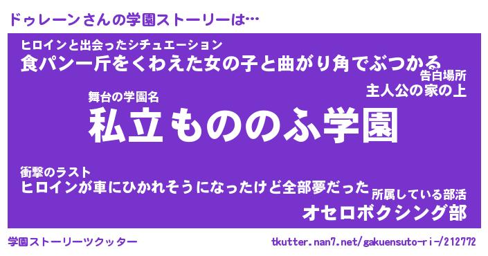 | 男性向けラノベタイトル風あだ名 | 『ドゥレーンの憂鬱』 |
