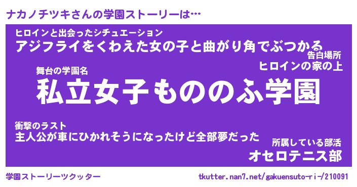 | 男性向けラノベタイトル風あだ名 | 『ナカノチツキアートオンライン』 |