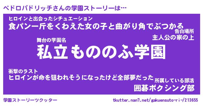 | 男性向けラノベタイトル風あだ名 | 『ペドロパドリッチの憂鬱』 |