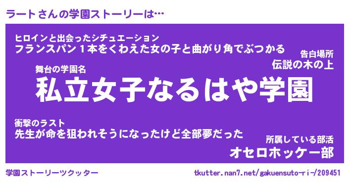 | 告白場所 先生の家の上 …「ふぃぎゅこ」 | 2月17日 06:24 |