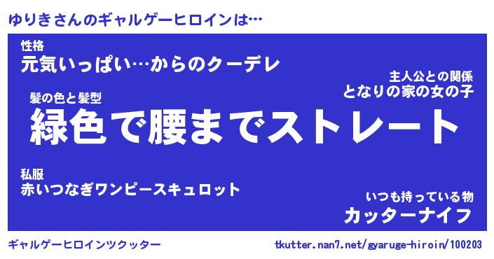 | ヘコむあだ名 | 『ゆりにゅー』『なまこ酢』『ゆりお』 |