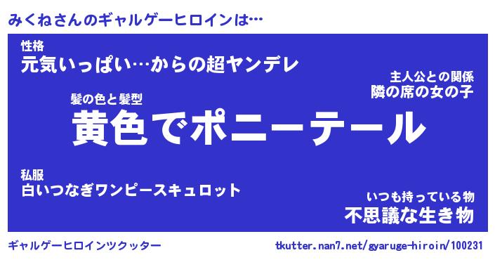 | ヘコむあだ名 | 『みくにゅー』『豆乳』『みくお』 |