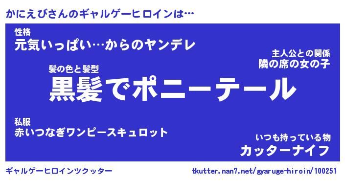 | 男性向けラノベタイトル風あだ名 | 『かにえびの憂鬱』 |
