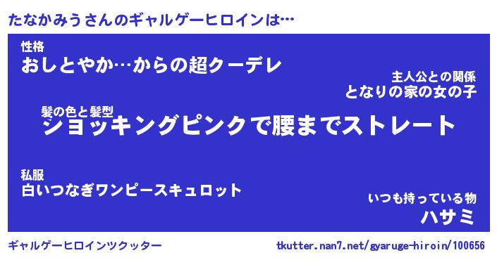 | ヒーロー風カッコイイあだ名 | 『スーパータナカミウ』『魔戒騎士タナ』 |