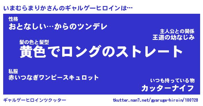 | 女子向けラノベタイトル風あだ名 | 『誰かこのいまむらまりかを説明してください! ~契約から始まるウェディング~』 |