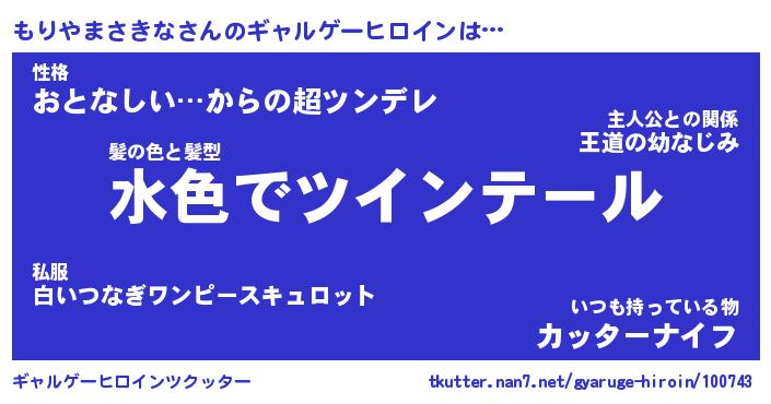 | 女子向けラノベタイトル風あだ名 | 『(仮)もりやまさきなのやんごとなき事情』 |