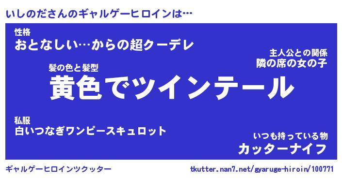 | ヘコむあだ名 | 『いしにー』『つくし』『いしお』 |
