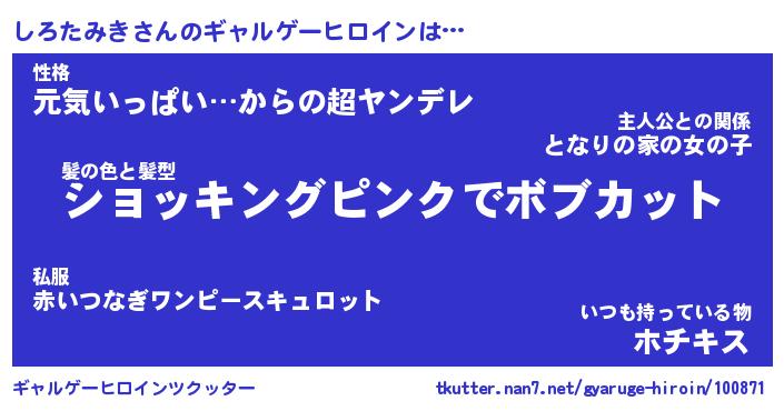 | 意味不明あだ名 | 『ペロリンしろたみき』 |
