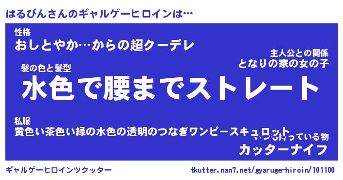 | 女子向けラノベタイトル風あだ名 | 『(仮)はるびんのやんごとなき事情』 |