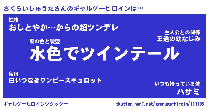 | 男性向けラノベタイトル風あだ名 | 『さくらいしゅうたの憂鬱』 |