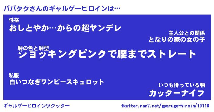 | 男性向けラノベタイトル風あだ名 | 『ババタクの憂鬱』 |