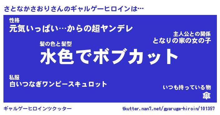 | 男性向けラノベタイトル風あだ名 | 『さとなかさおりの憂鬱』 |