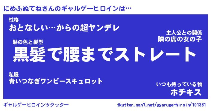 | 男性向けラノベタイトル風あだ名 | 『にめふぬてねの憂鬱』 |
