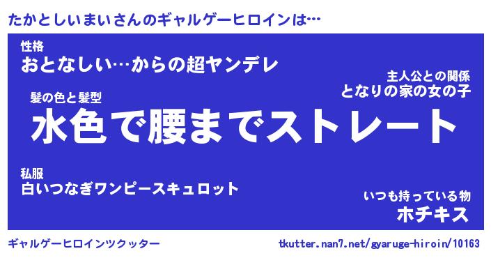 | 女子向けラノベタイトル風あだ名 | 『(仮)たかとしいまいのやんごとなき事情』 |