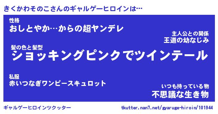 | 男性向けラノベタイトル風あだ名 | 『きくかわそのこの憂鬱』 |