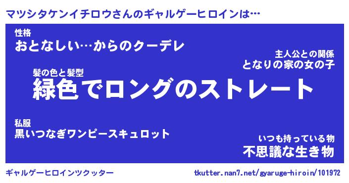 | 女子向けラノベタイトル風あだ名 | 『誰かこのマツシタケンイチロウを説明してください! ~契約から始まるウェディング~』 |