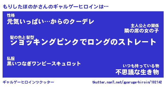 | 女子向けラノベタイトル風あだ名 | 『(仮)もりしたほのかのやんごとなき事情』 |