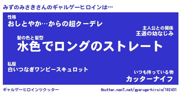 | 男性向けラノベタイトル風あだ名 | 『みずのみさきの憂鬱』 |
