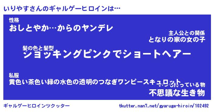 | 男性向けラノベタイトル風あだ名 | 『いりやすの憂鬱』 |