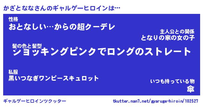 | 胡散臭い通販商品みたいなあだ名 | 『必ず成功する水晶球…その名も「かざとなな」』 |