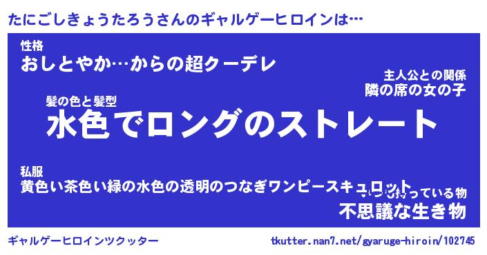 | 女子向けラノベタイトル風あだ名 | 『(仮)たにごしきょうたろうのやんごとなき事情』 |