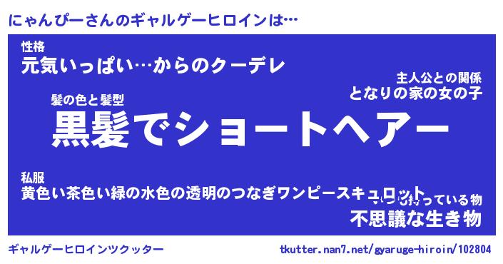 | 男性向けラノベタイトル風あだ名 | 『にゃんぴーの憂鬱』 |
