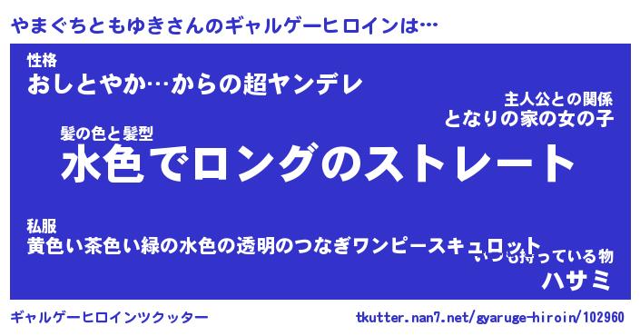 | 女子向けラノベタイトル風あだ名 | 『(仮)やまぐちともゆきのやんごとなき事情』 |