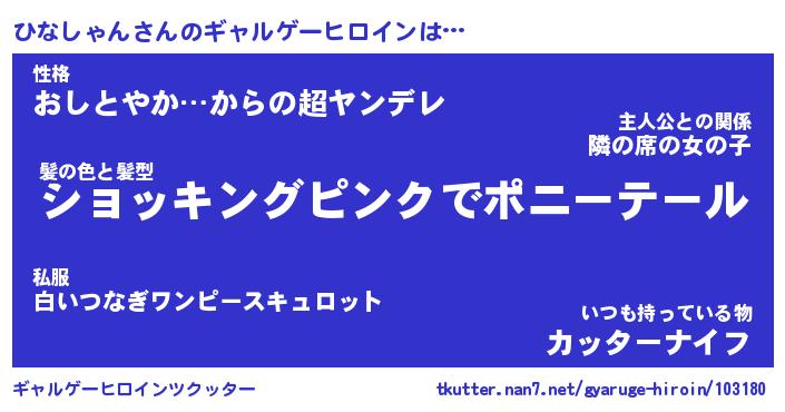 | 女子向けラノベタイトル風あだ名 | 『(仮)ひなしゃんのやんごとなき事情』 |