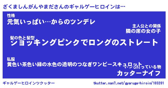| 女子向けラノベタイトル風あだ名 | 『(仮)ざくましんがんやまだのやんごとなき事情』 |
