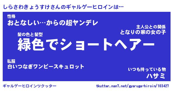 | ツイッター | しらさわきょうすけさんのツイッターID『dendenmushi_kun』 |
