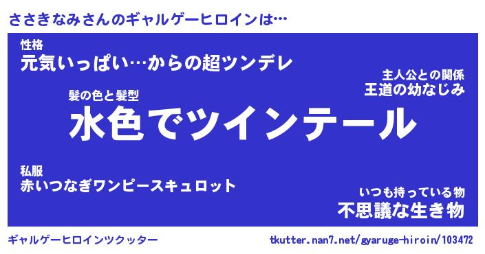 | 男性向けラノベタイトル風あだ名 | 『ささきなみの憂鬱』 |