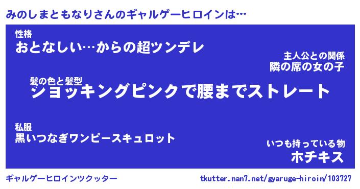 | 女子向けラノベタイトル風あだ名 | 『(仮)みのしまともなりのやんごとなき事情』 |