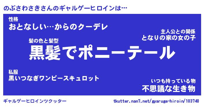 | 女子向けラノベタイトル風あだ名 | 『(仮)のぶさわさきのやんごとなき事情』 |