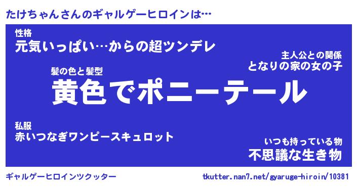 | ヘコむあだ名 | 『たけもー』『なまこ酢』『たけっ子』 |