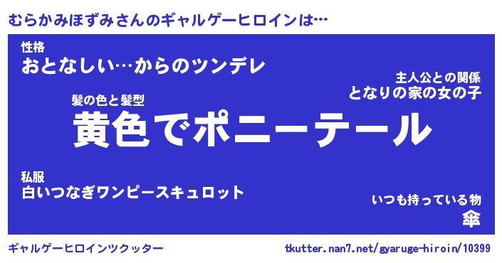 | 女子向けラノベタイトル風あだ名 | 『誰かこのむらかみほずみを説明してください! ~契約から始まるウェディング~』 |