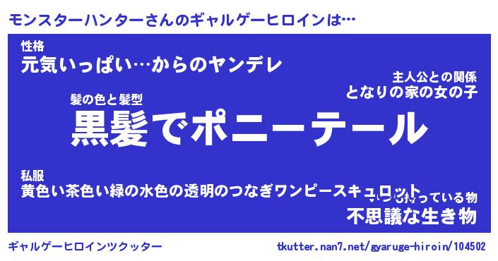 | 男性向けラノベタイトル風あだ名 | 『モンスターハンターの憂鬱』 |