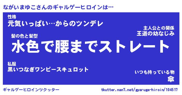 | 女子向けラノベタイトル風あだ名 | 『(仮)ながいまゆこのやんごとなき事情』 |
