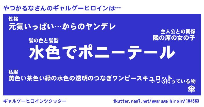 | 男性向けラノベタイトル風あだ名 | 『やつかるなの憂鬱』 |