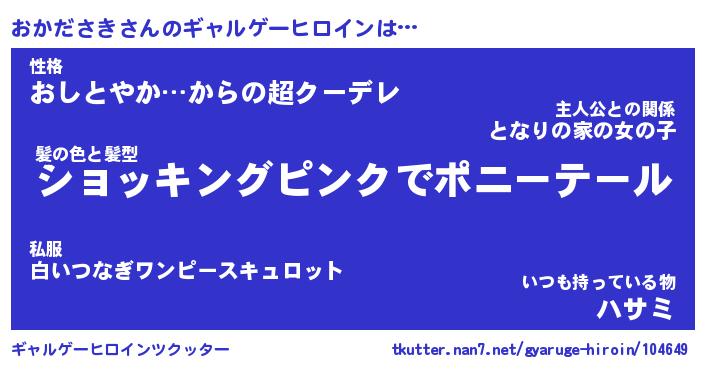 | 男性向けラノベタイトル風あだ名 | 『おかださきの憂鬱』 |