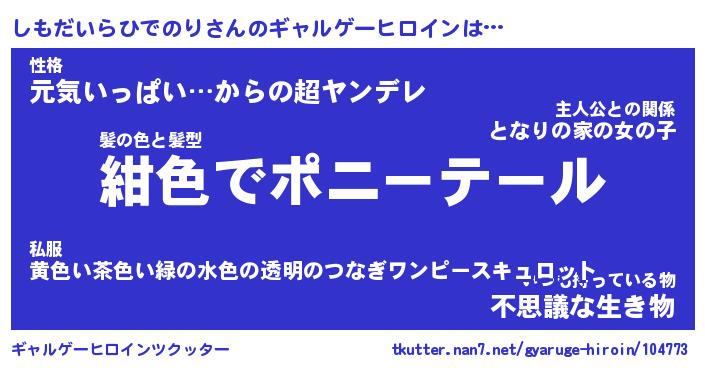 | ヘコむあだ名 | 『しもにー』『なまこ酢』『しもを』 |