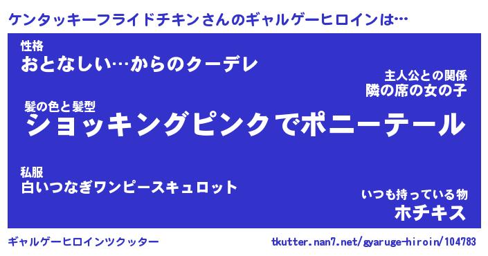 | 女子向けラノベタイトル風あだ名 | 『(仮)ケンタッキーフライドチキンのやんごとなき事情』 |