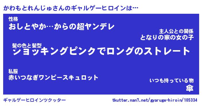 | 肩書あだ名 | 『かわもとれんじゅ御曹司』 |