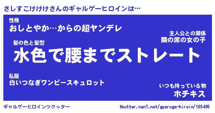 | 男性向けラノベタイトル風あだ名 | 『さしすこけけけの憂鬱』 |