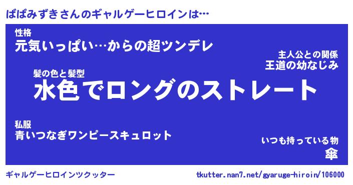 | 女子向けラノベタイトル風あだ名 | 『(仮)ばばみずきのやんごとなき事情』 |