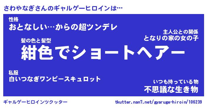 | ファンタジー風あだ名 | 『サワフェル』『エターナルサワヤナギー』 |